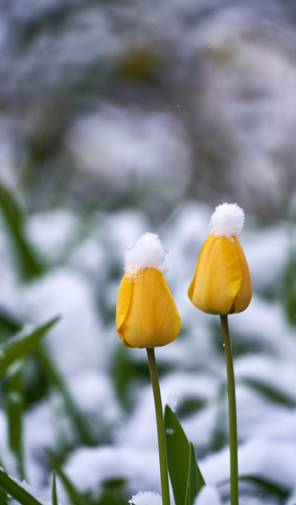 Wallpaper: tulips, snow - 600x1024