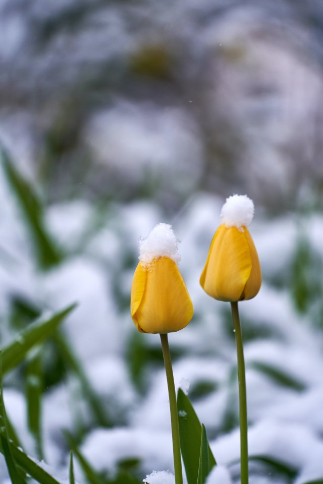 Wallpaper: tulips, snow - 640x960