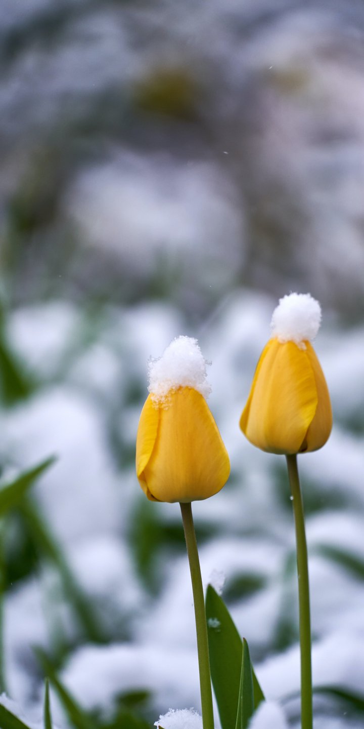 Wallpaper: tulips, snow - 720x1440