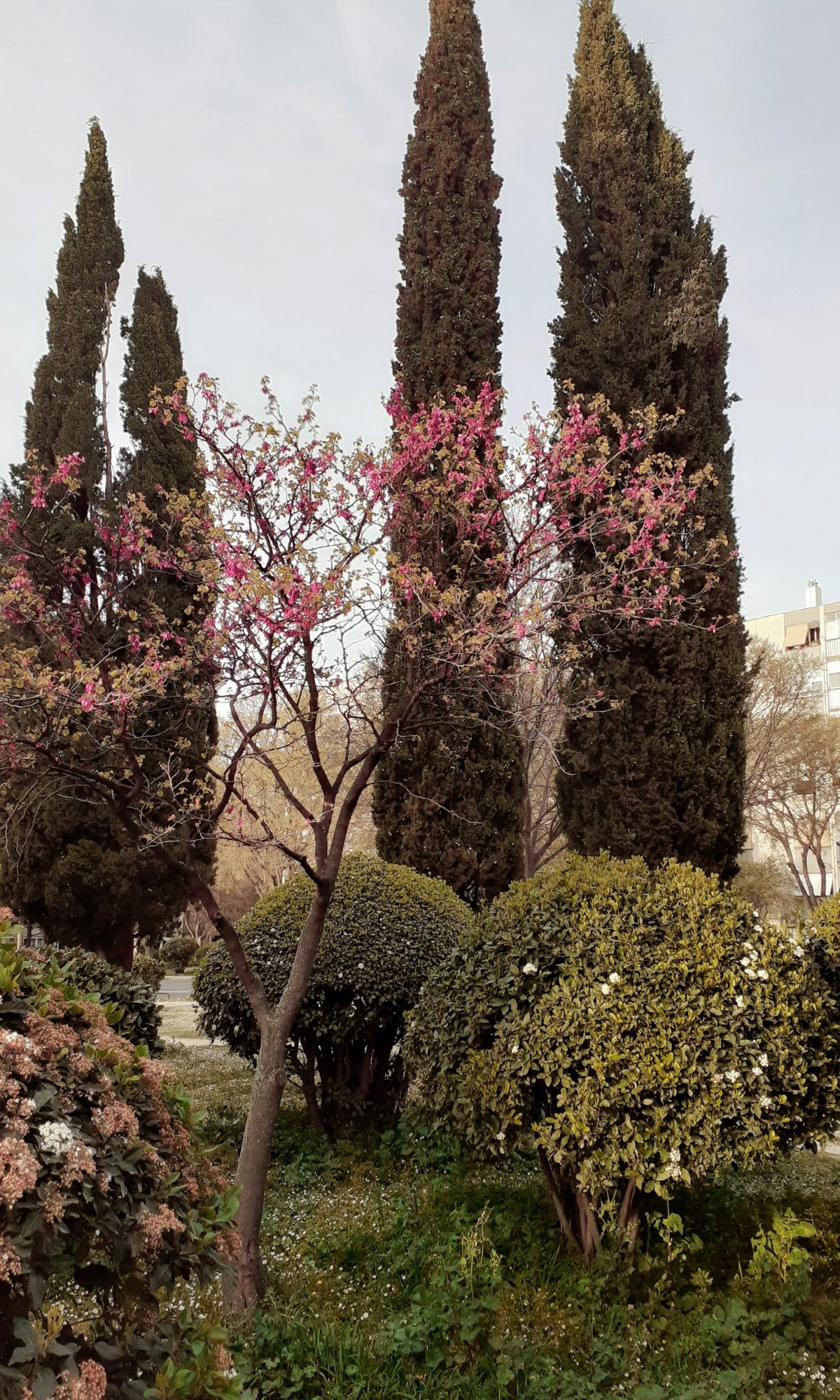 Wallpaper: trees, flower bed, lawn - 1200x2000