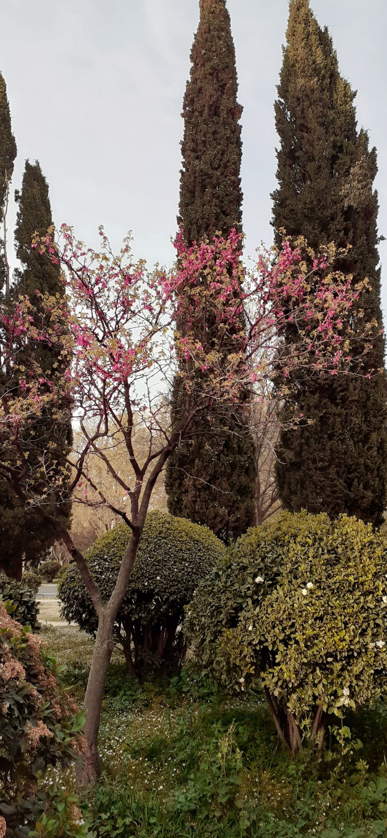 Wallpaper: trees, flower bed, lawn - 1284x2778