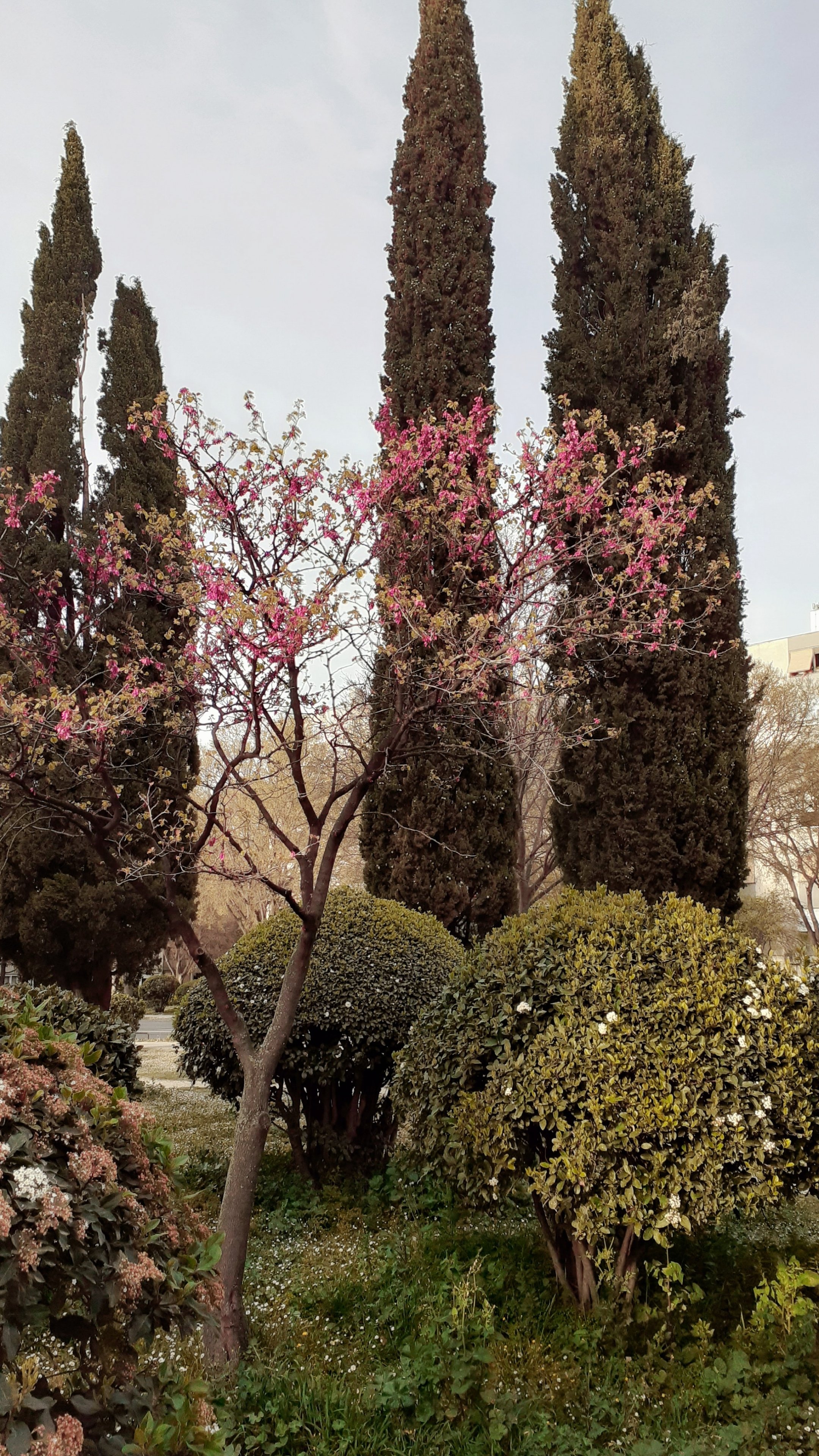 Wallpaper: trees, flower bed, lawn - 2160x3840