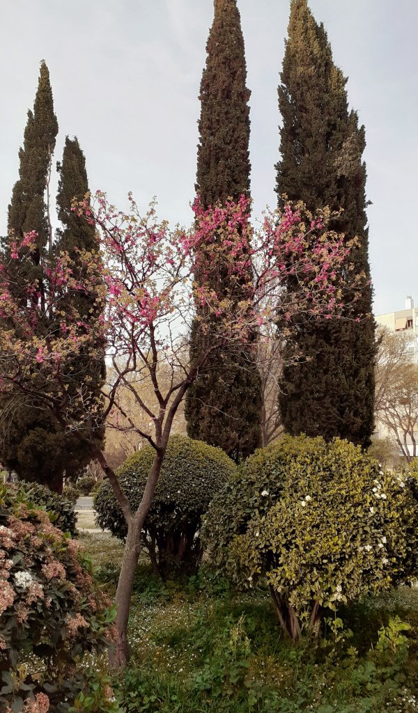 Wallpaper: trees, flower bed, lawn - 600x1024