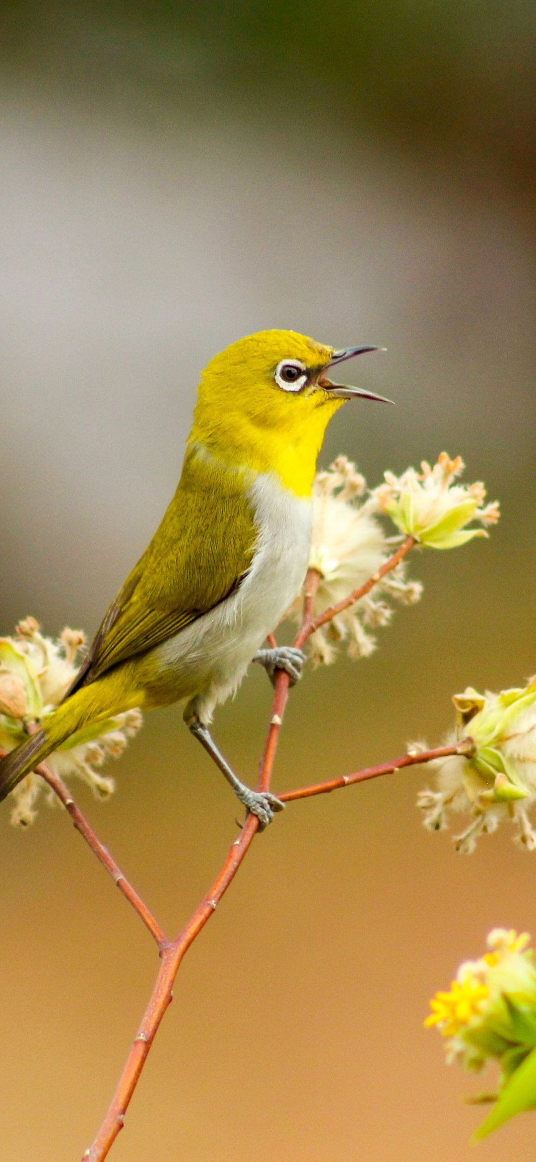 Wallpaper: little bird, flowers - 1080x2340