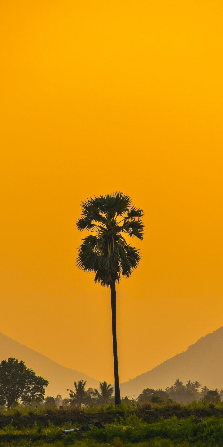 palm trees, sunset, sky Wallpaper 720x1440