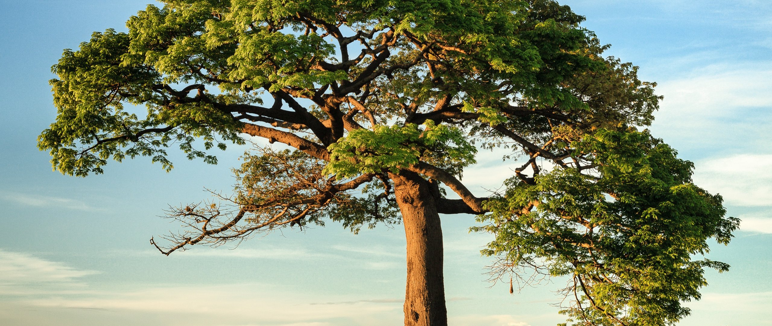 Wallpaper: tree, grass, sky - 2560x1080