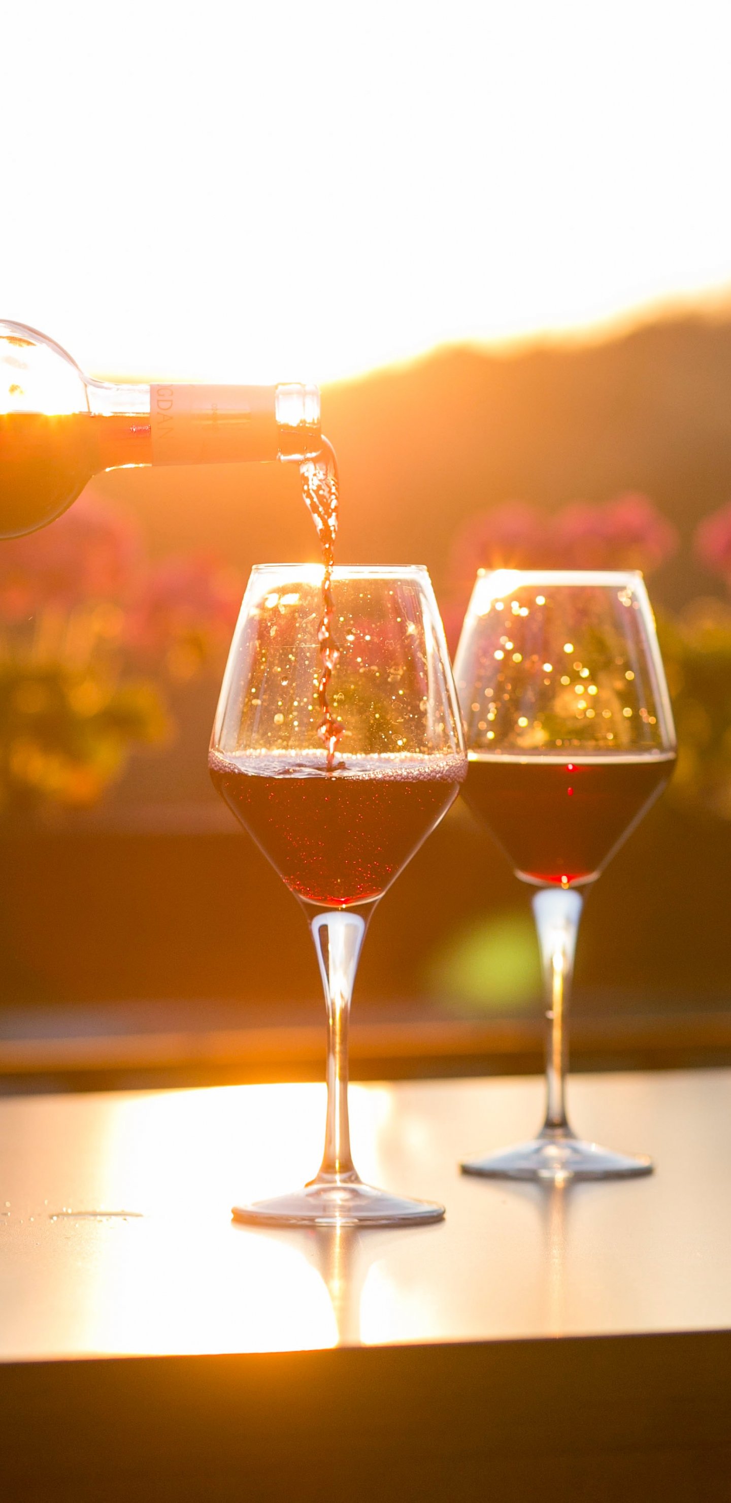 Wallpaper: glasses of wine, sunset - 1440x2960