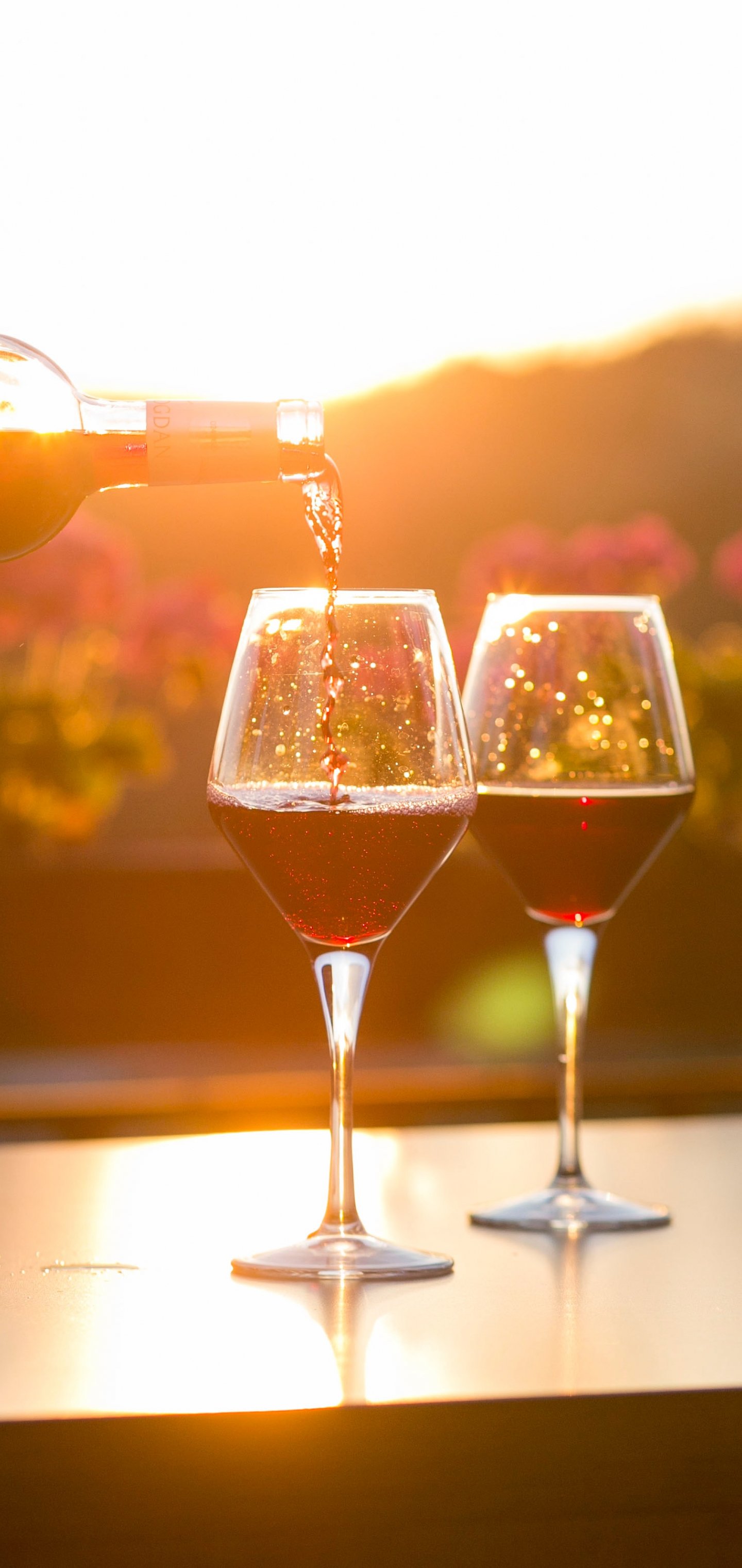 Wallpaper: glasses of wine, sunset - 1440x3040