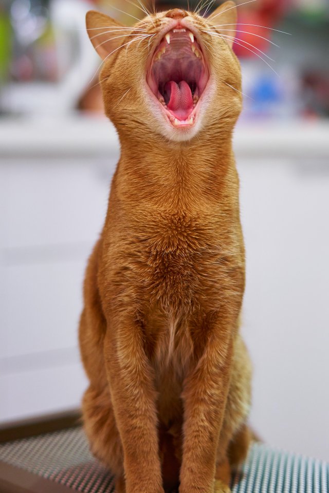 Wallpaper: red cat, yawns - 640x960
