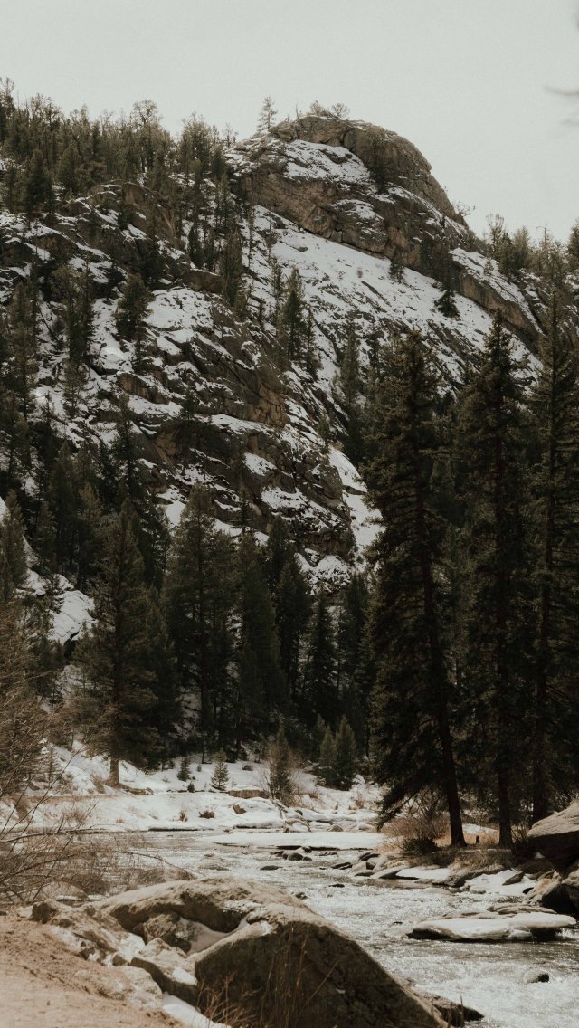 Wallpaper: forest, mountains, mountain river - 640x1136