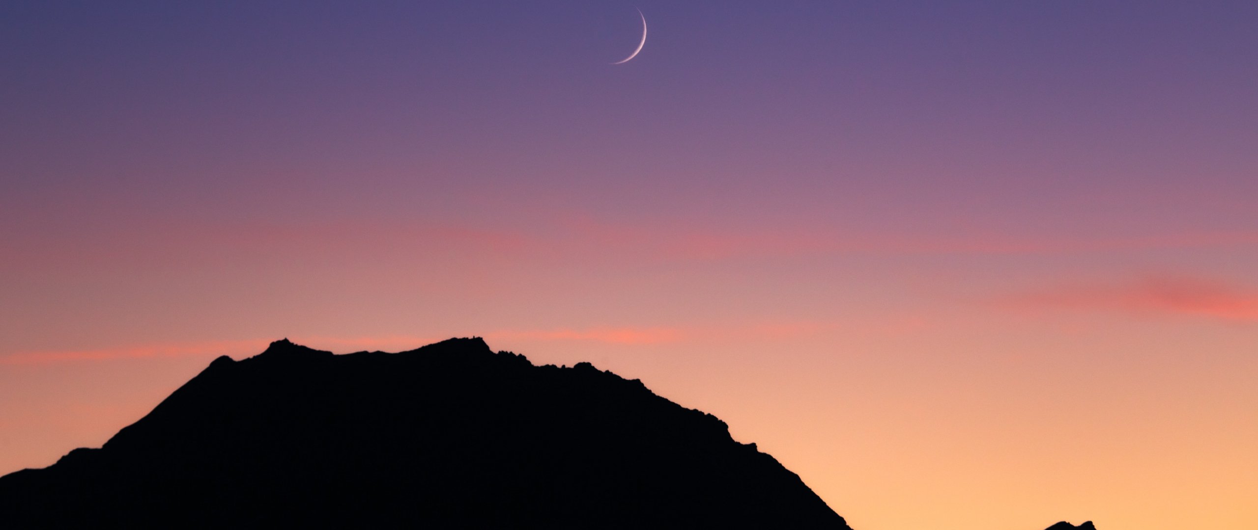 Wallpaper: sunset, moon, mountains - 2560x1080