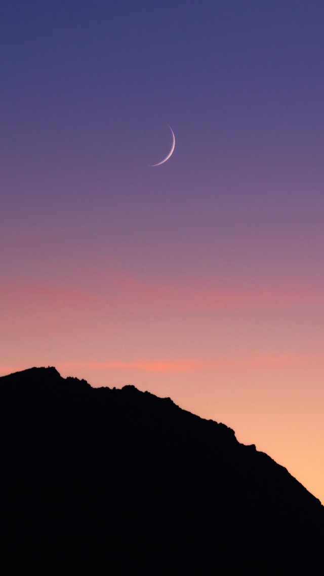 Wallpaper: sunset, moon, mountains - 640x1136