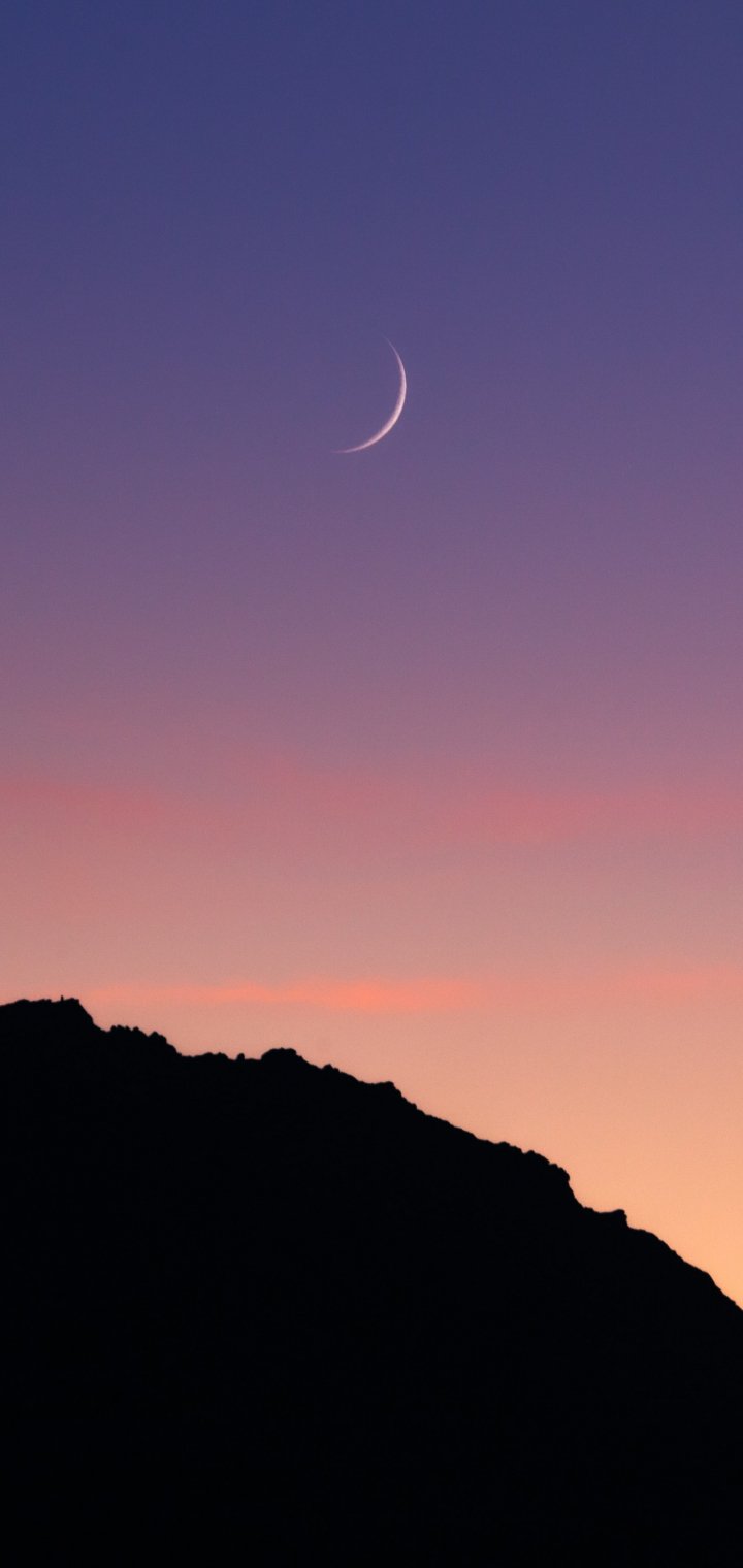 Wallpaper: sunset, moon, mountains - 720x1520