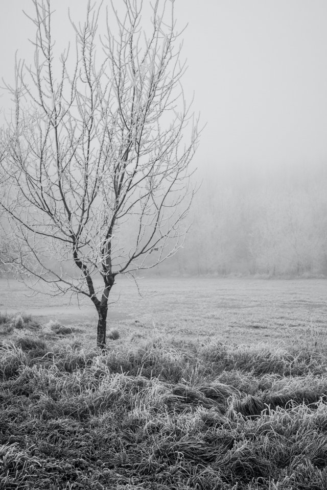 Wallpaper: first frost, tree - 640x960