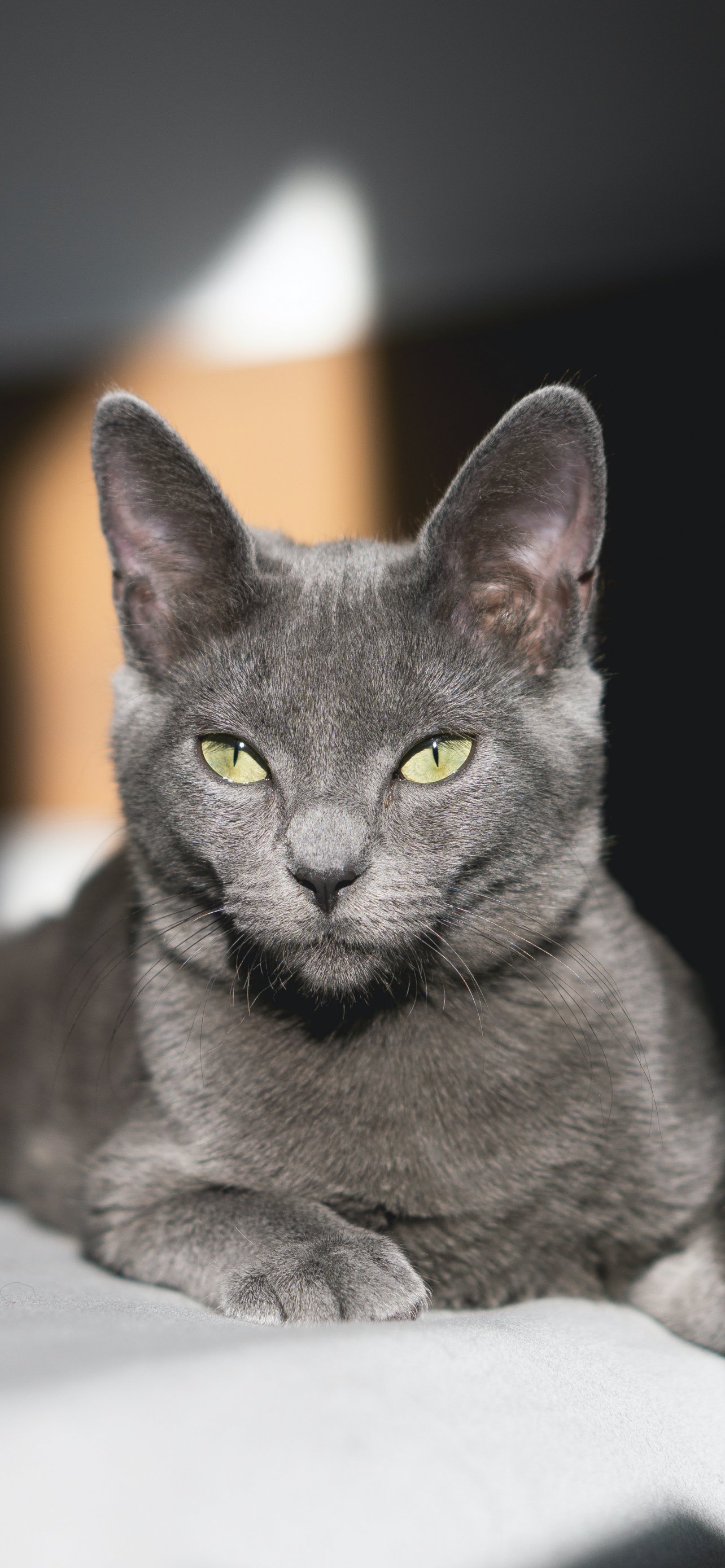Wallpaper: gray cat, green eyes - 1284x2778