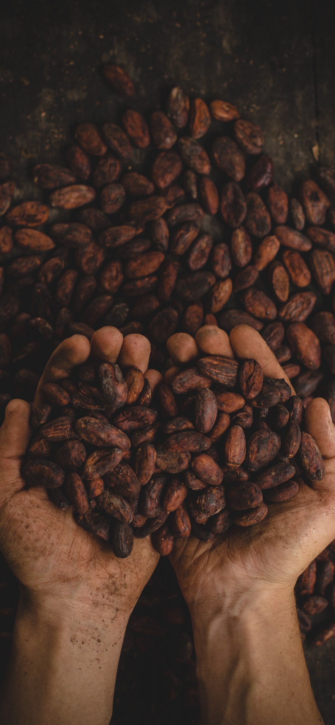 Wallpaper: cocoa beans, hands - 1125x2436