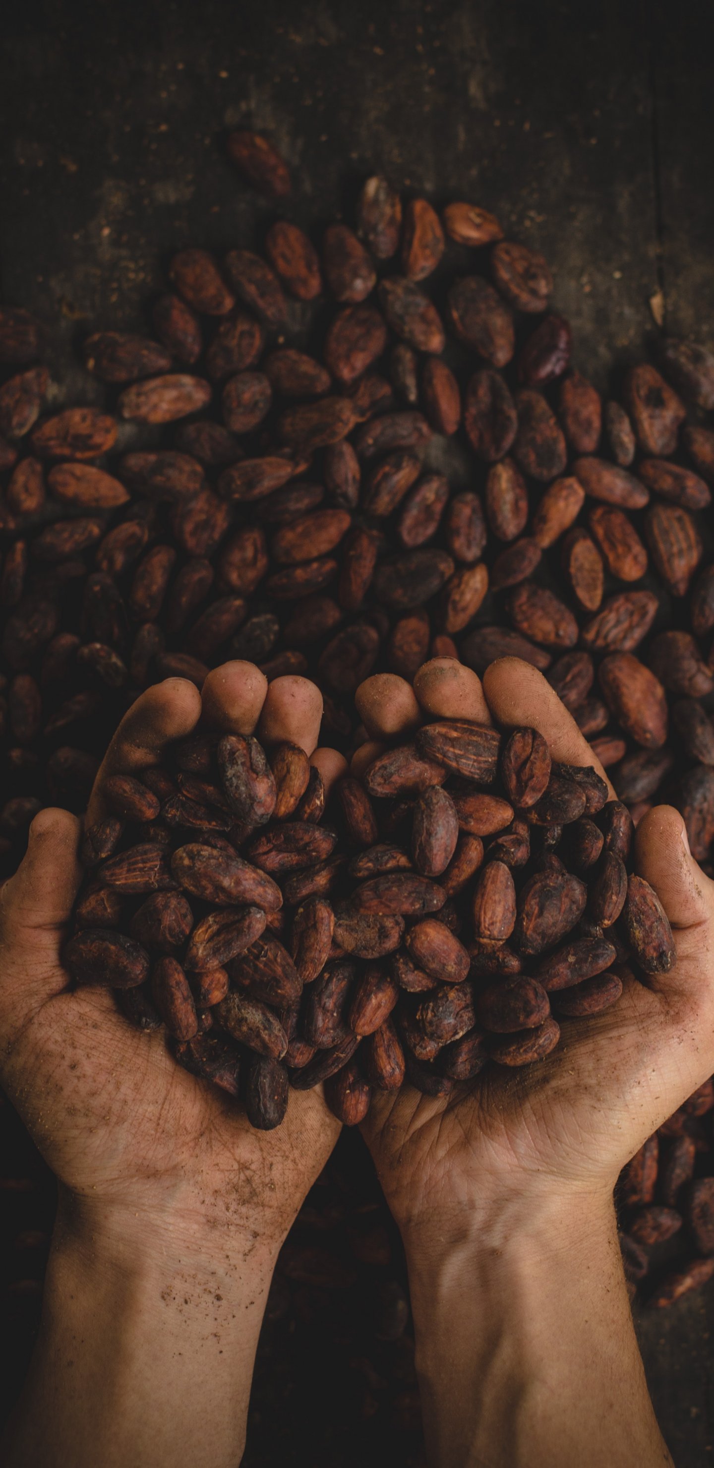Wallpaper: cocoa beans, hands - 1440x2960