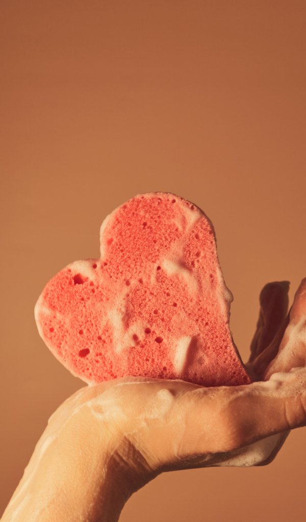 Wallpaper: sponge, hand, soap suds - 600x1024