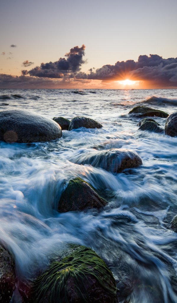 Wallpaper: sea waves, sunrise - 600x1024