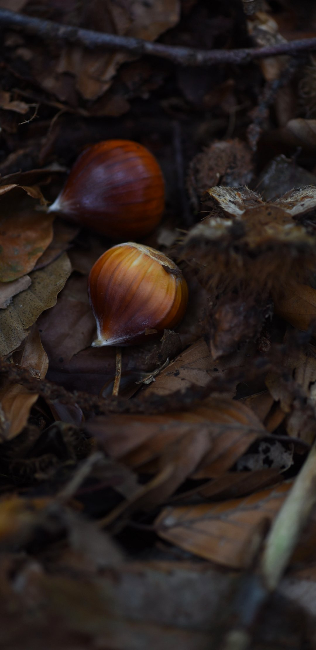 Wallpaper: fallen leaves, nuts - 1080x2220