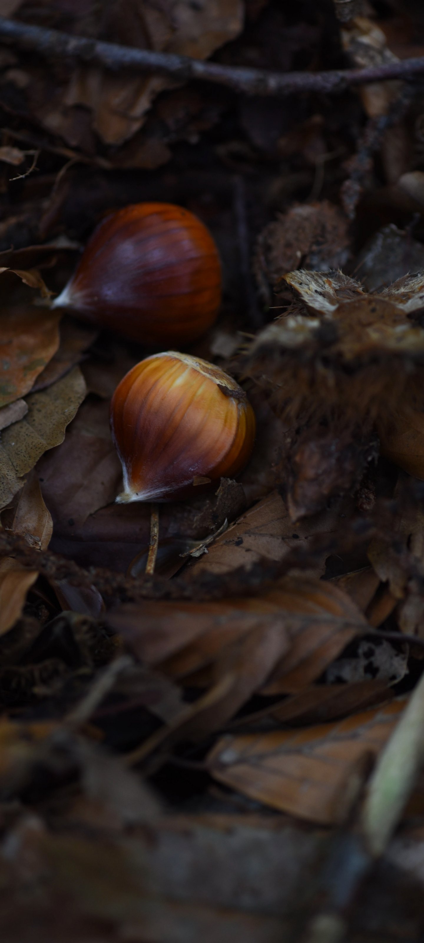 Wallpaper: fallen leaves, nuts - 1440x3200