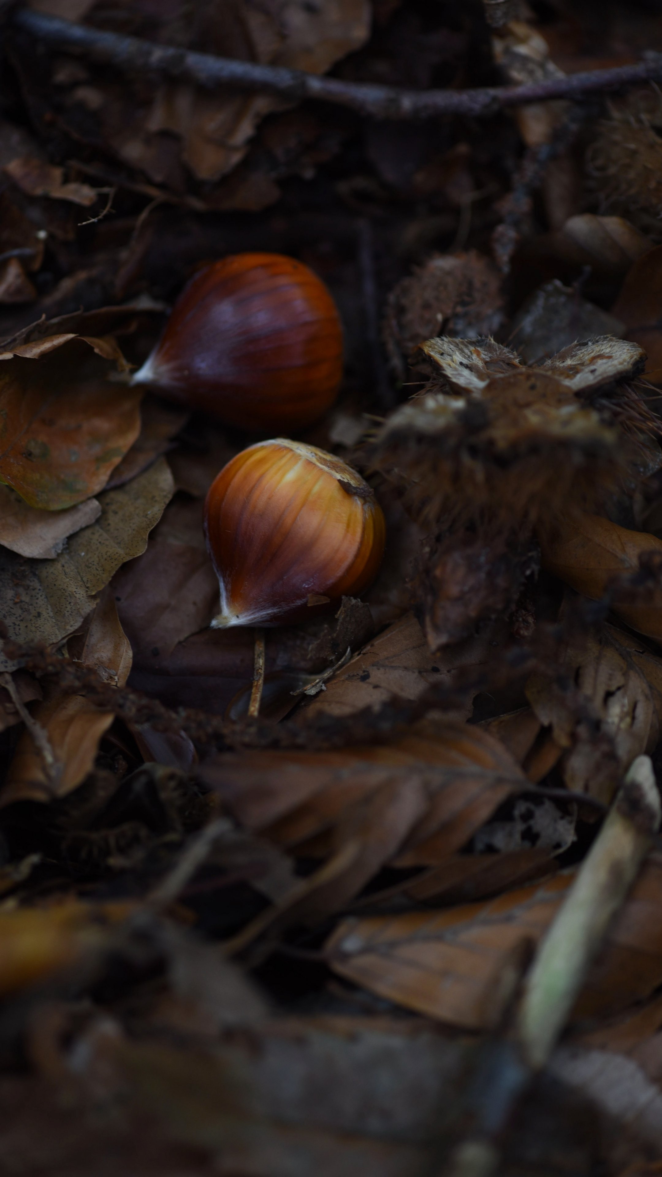 Wallpaper: fallen leaves, nuts - 2160x3840