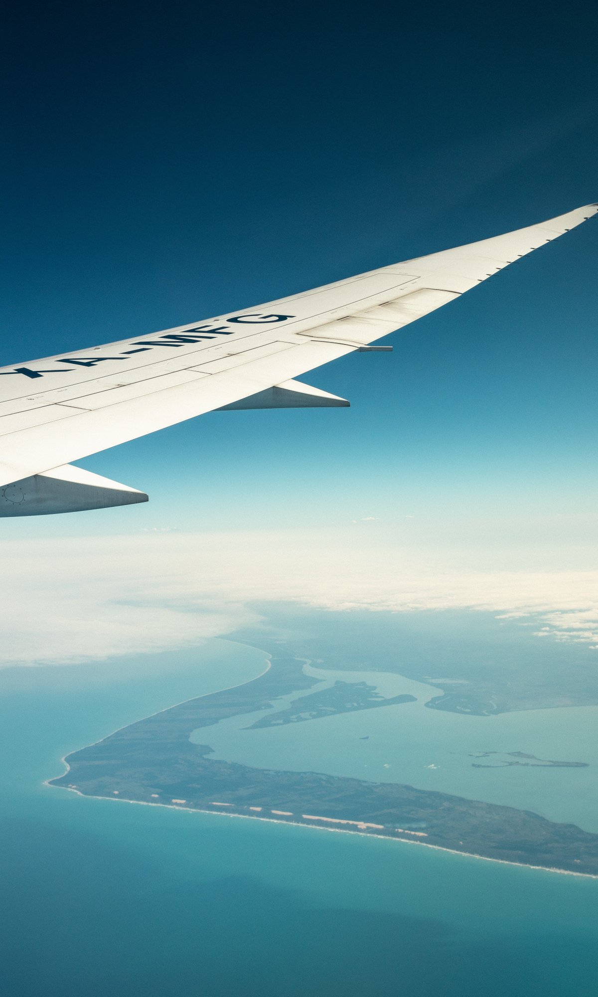 Wallpaper: airplane wing, above ground - 1200x2000