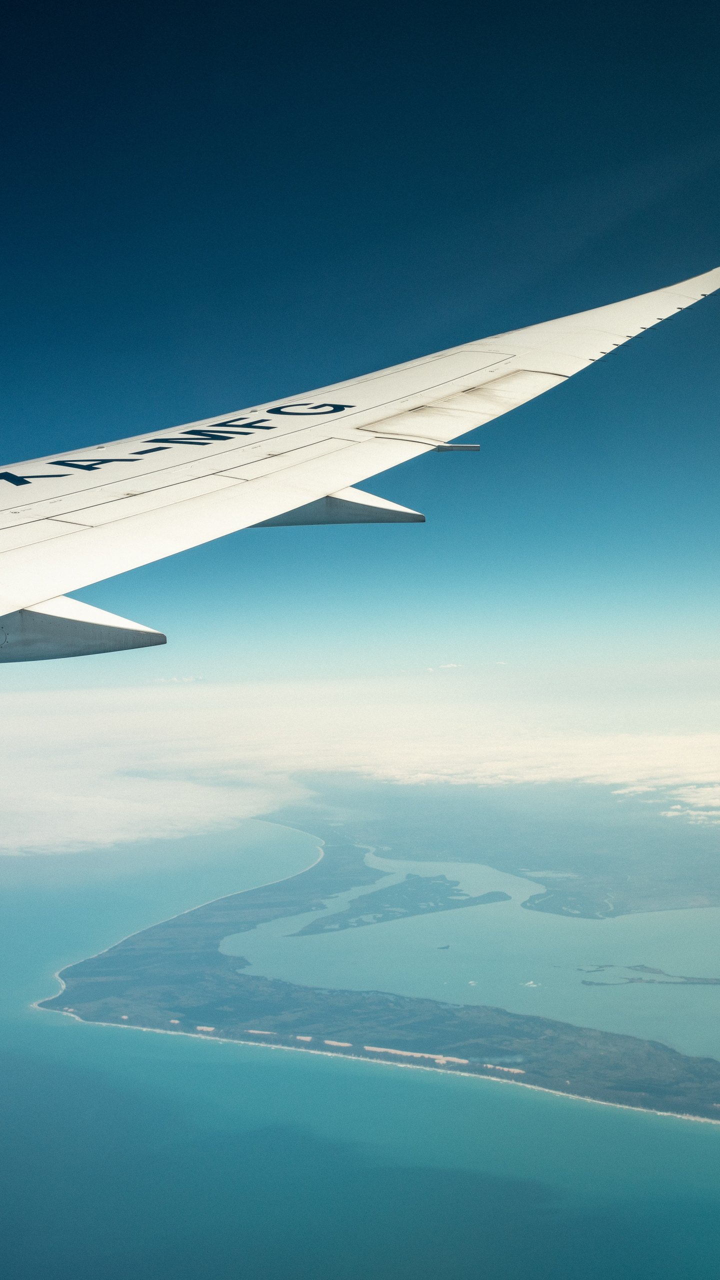 Wallpaper: airplane wing, above ground - 1440x2560