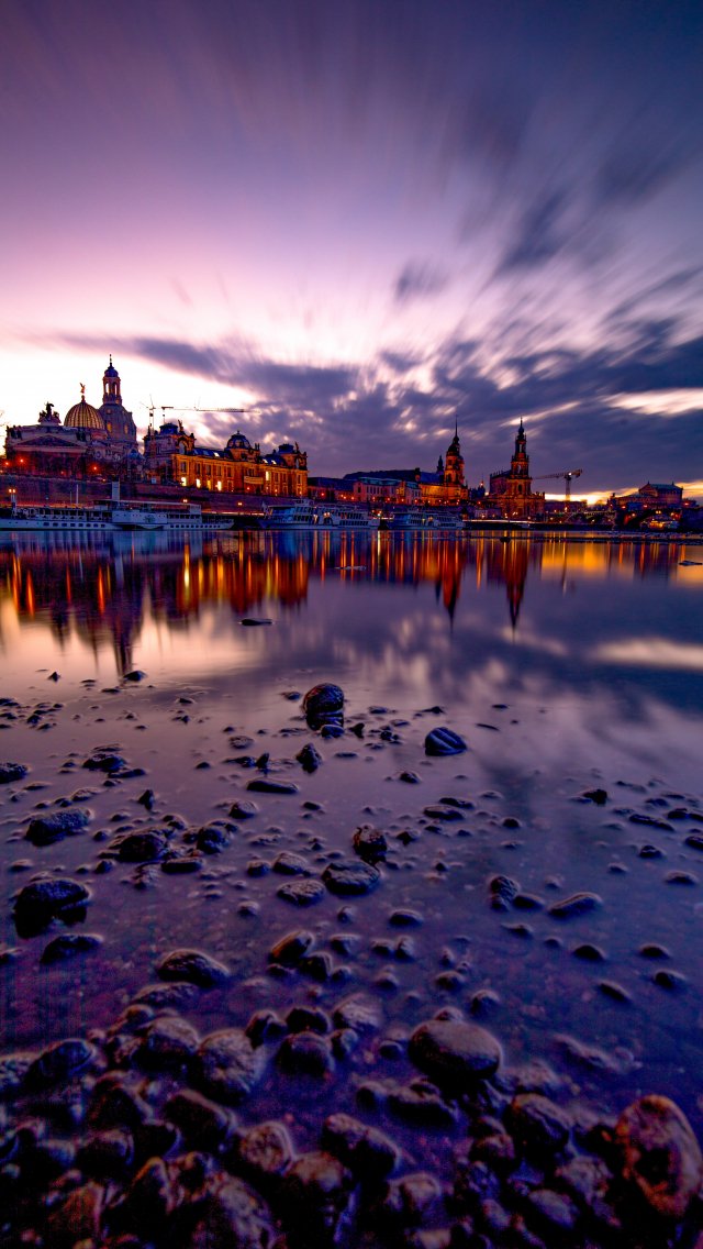 Wallpaper: lake, city, evening - 640x1136