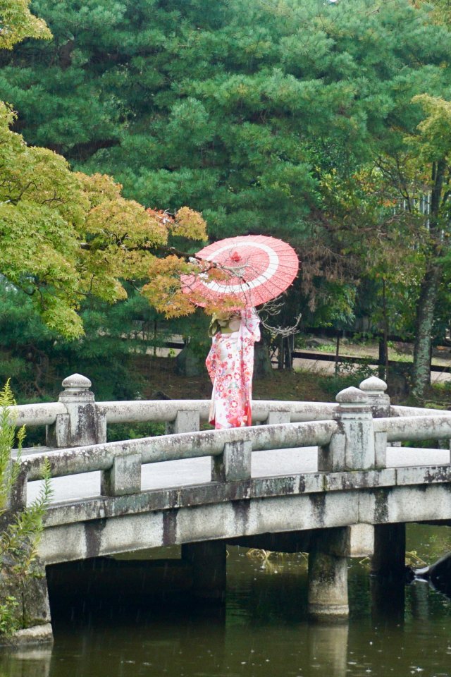 Wallpaper: Kyoto, Japan, bridge across the lake - 640x960