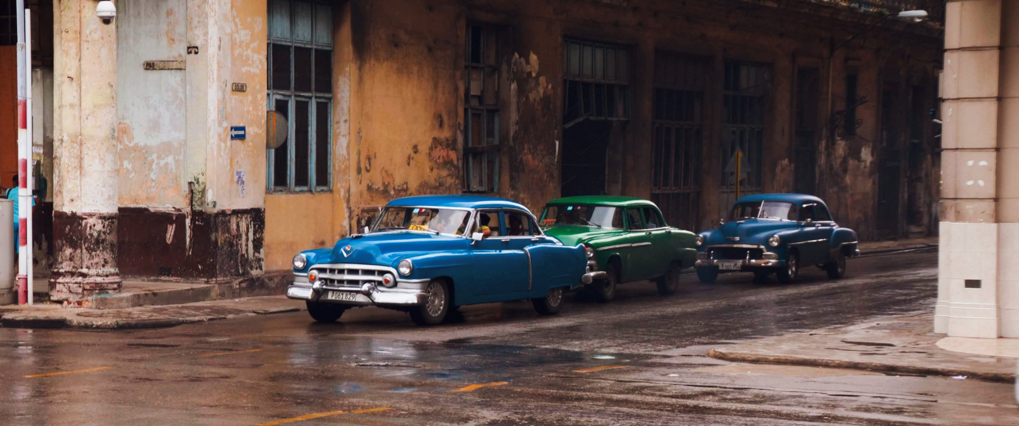 Wallpaper: city street, machines - 3440x1440