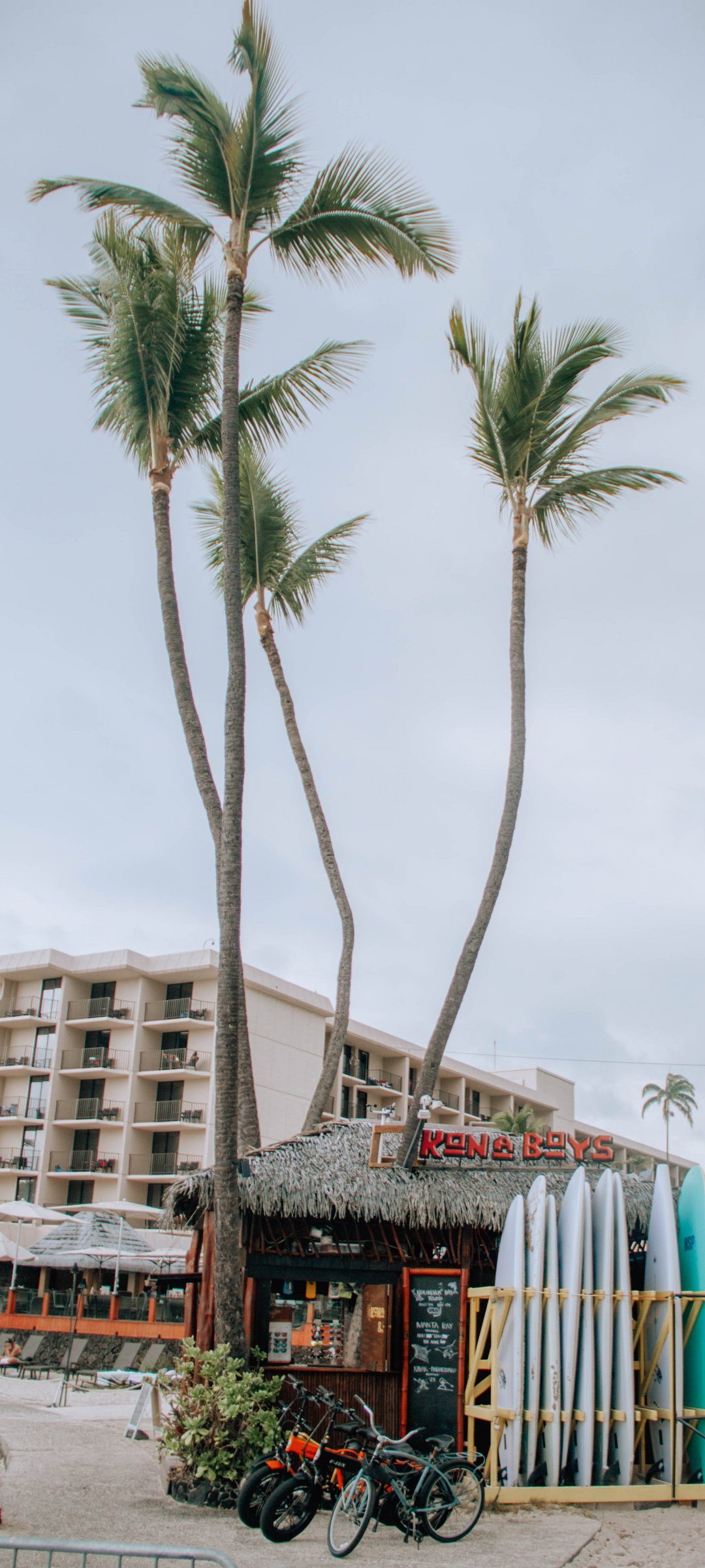 Wallpaper: palm trees, surfing - 1080x2400