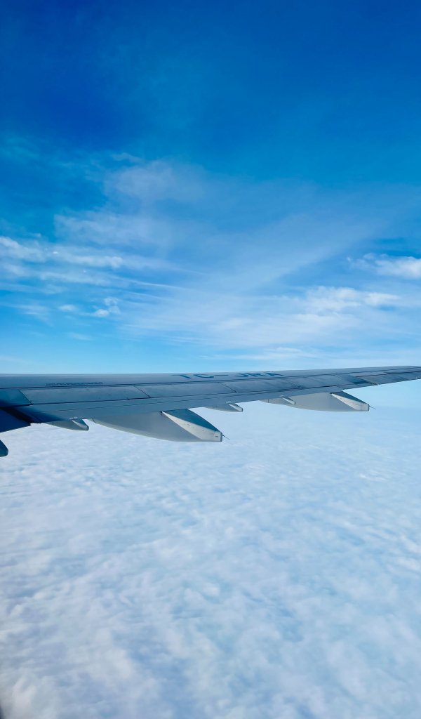 Wallpaper: airplane wing, above the clouds - 600x1024