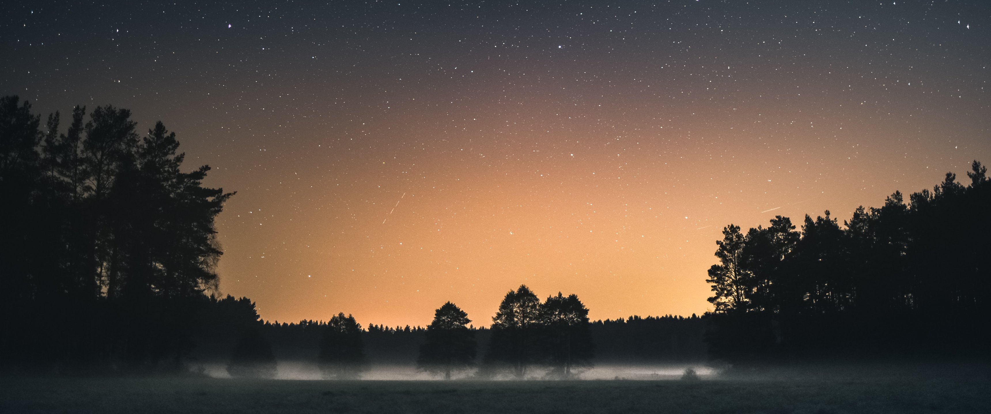 Wallpaper: Вда, Poland, starry sky - 3440x1440