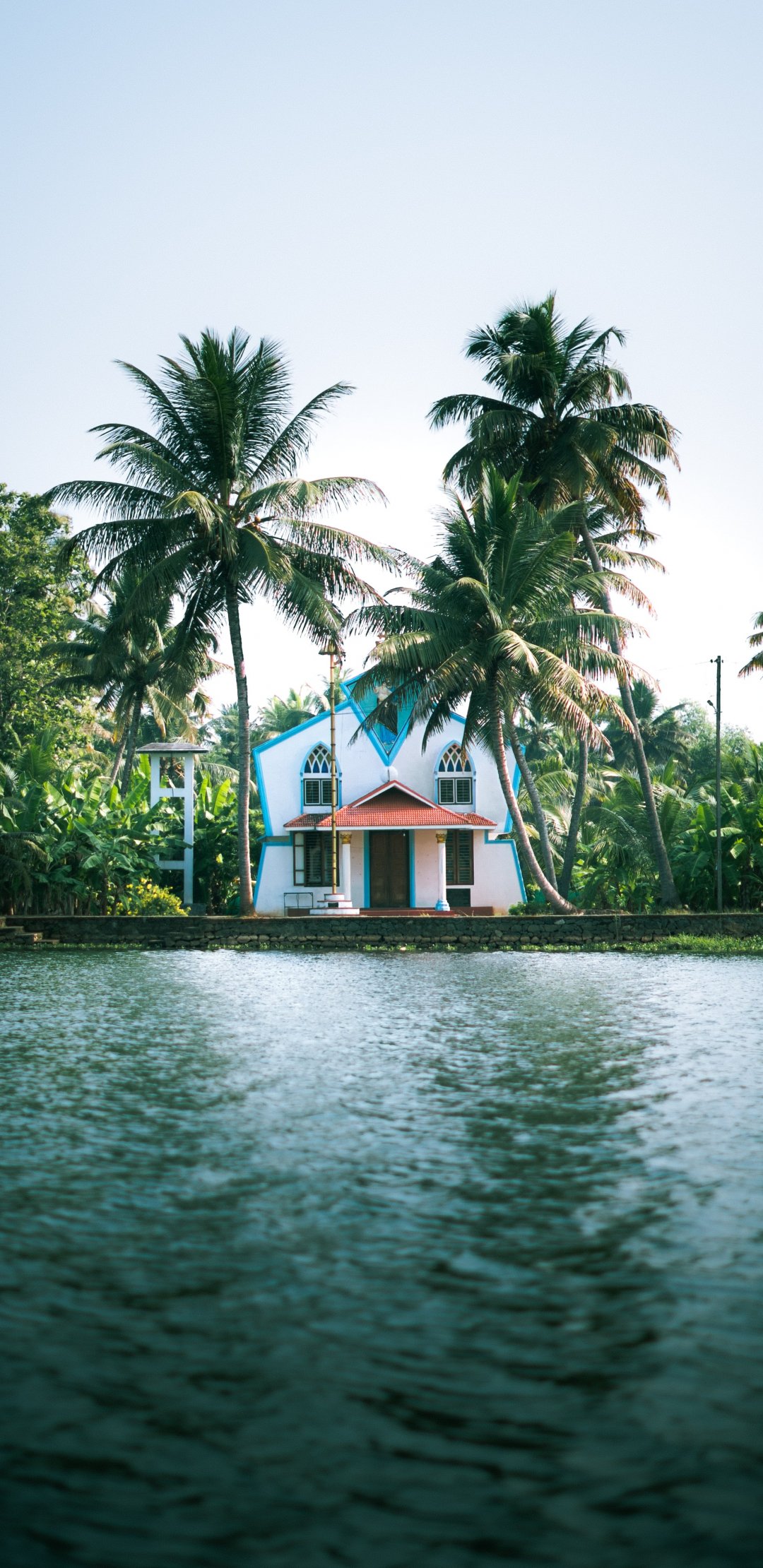 Wallpaper: rest, lake, palm trees - 1080x2220