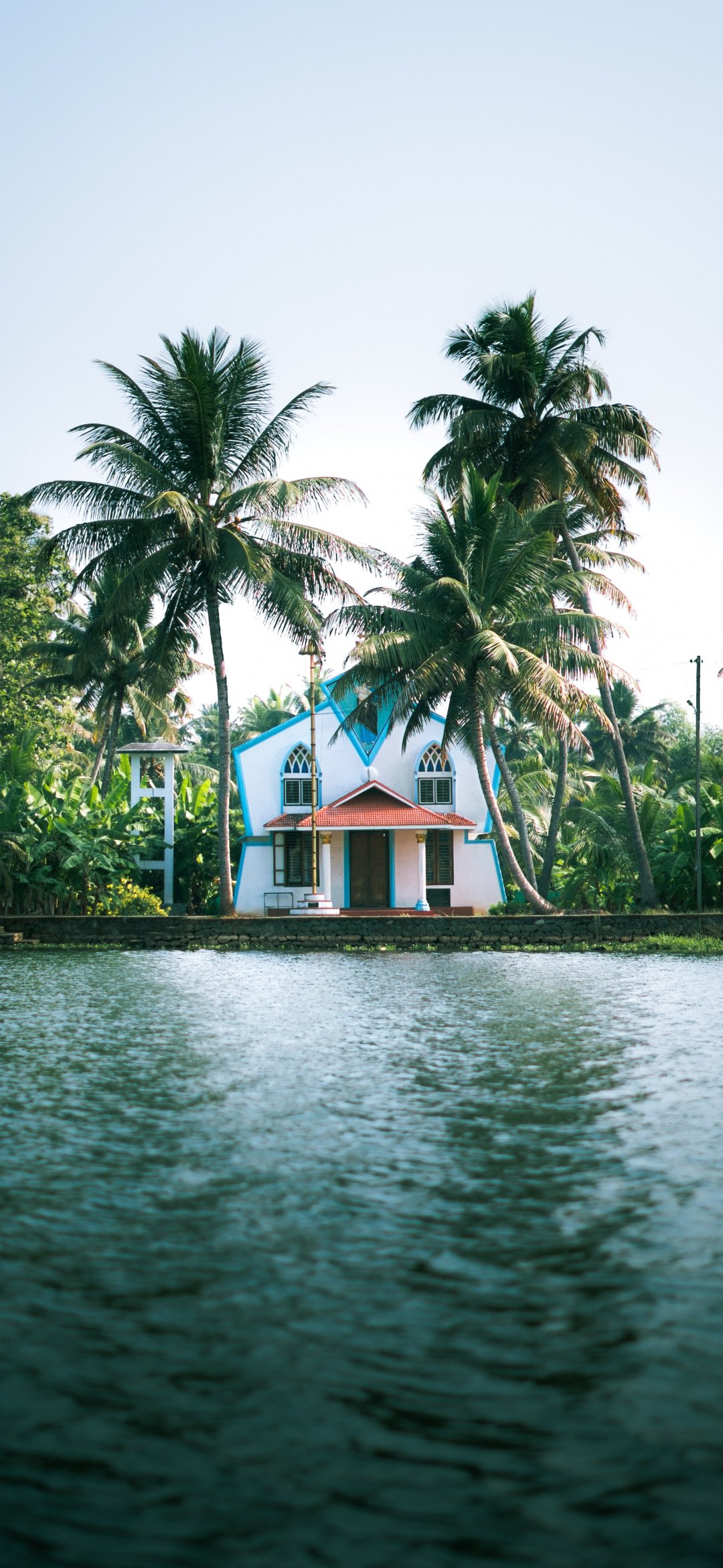 Wallpaper: rest, lake, palm trees - 1080x2340