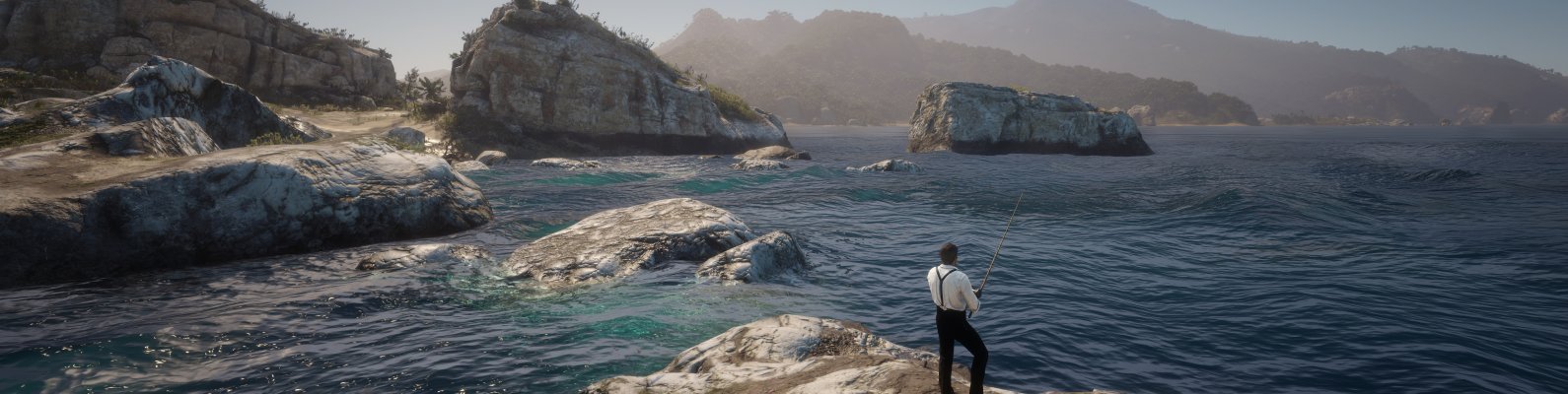 Wallpaper: Red Dead Redemption 2, sea, fishing - 1590x400