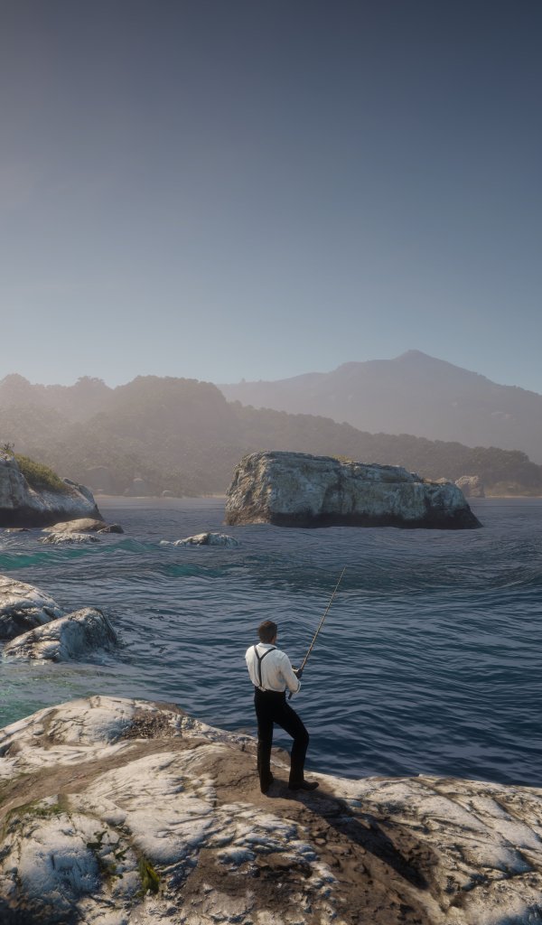 Wallpaper: Red Dead Redemption 2, sea, fishing - 600x1024