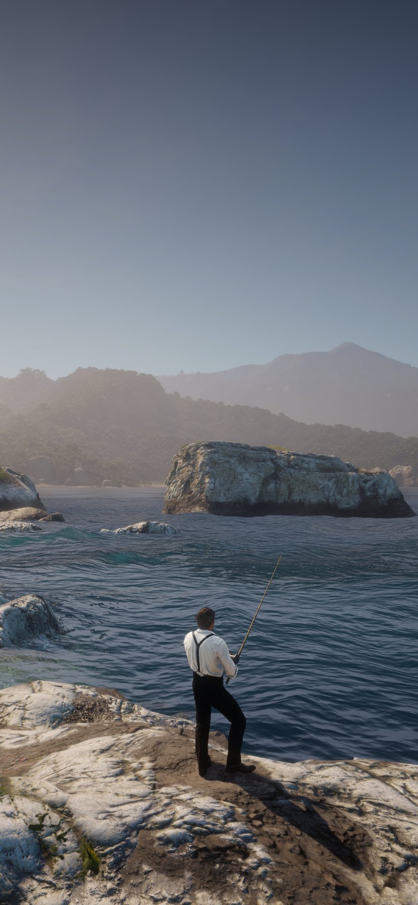 Wallpaper: Red Dead Redemption 2, sea, fishing - 828x1792