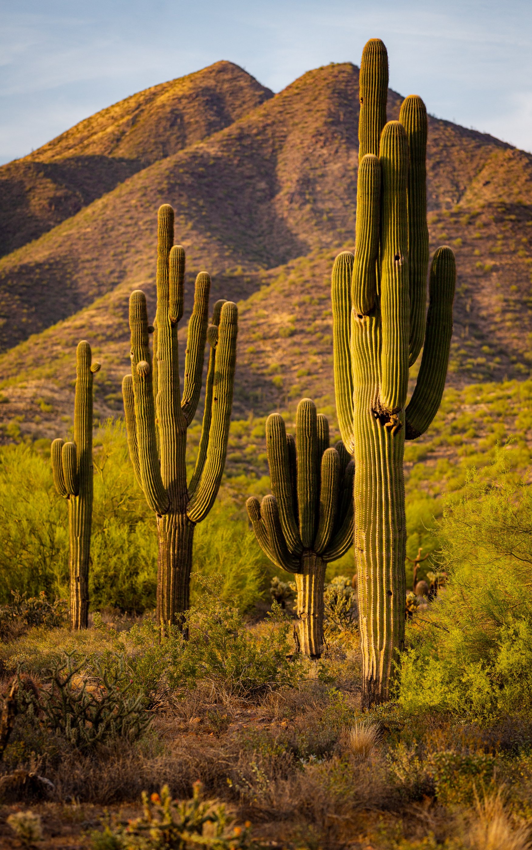 Wallpaper: Scottsdale, Arizona, USA, cacti by the mountains - 1752x2800
