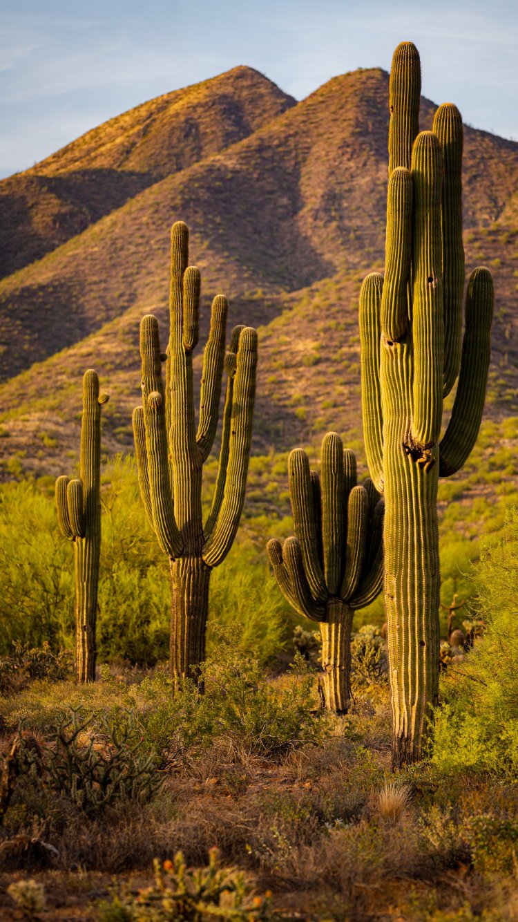 Wallpaper: Scottsdale, Arizona, USA, cacti by the mountains - 750x1334