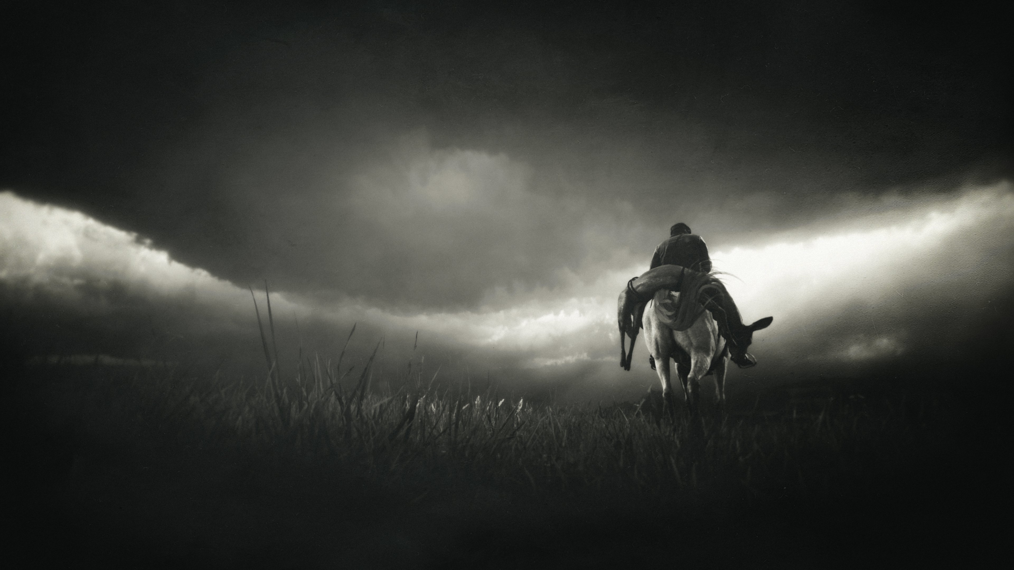 Wallpaper: Red Dead Redemption 2, black and white - 3840x2160
