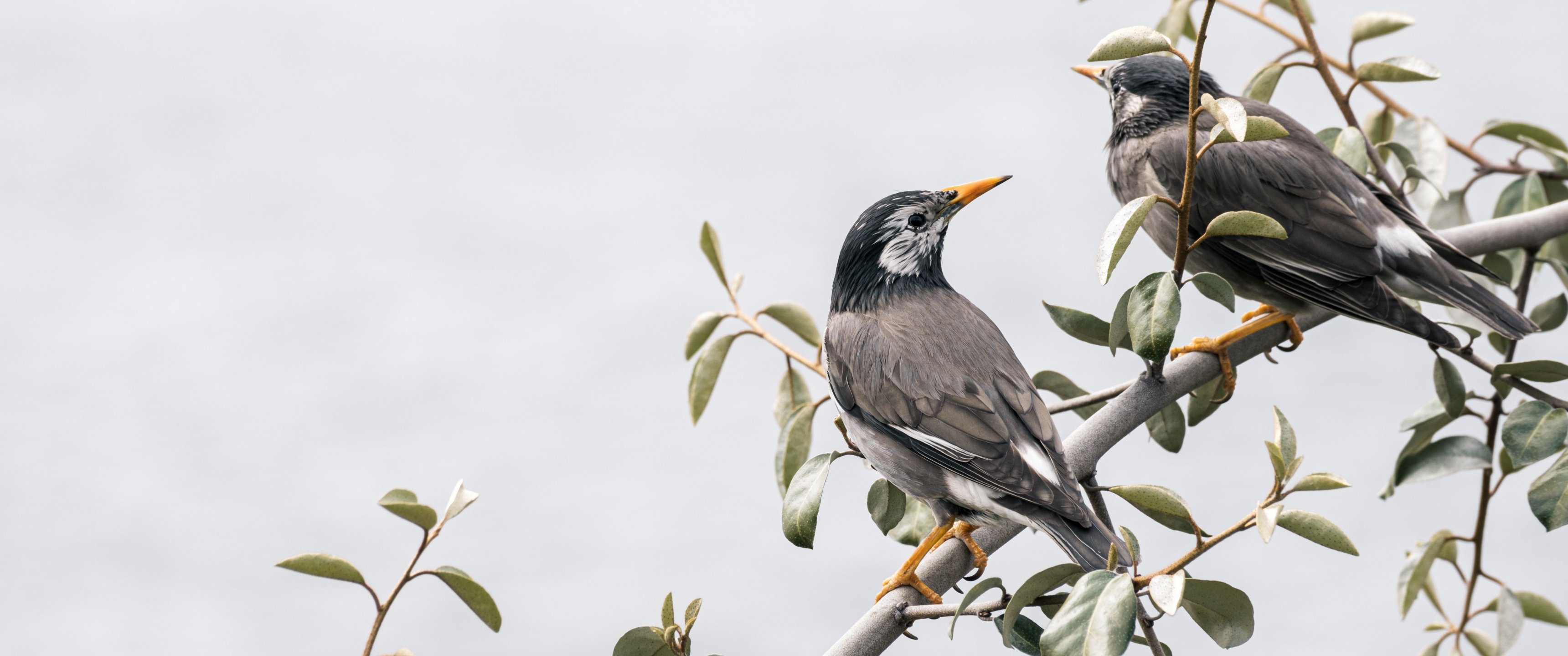 Wallpaper: birds on a branch, pair of birds - 3440x1440