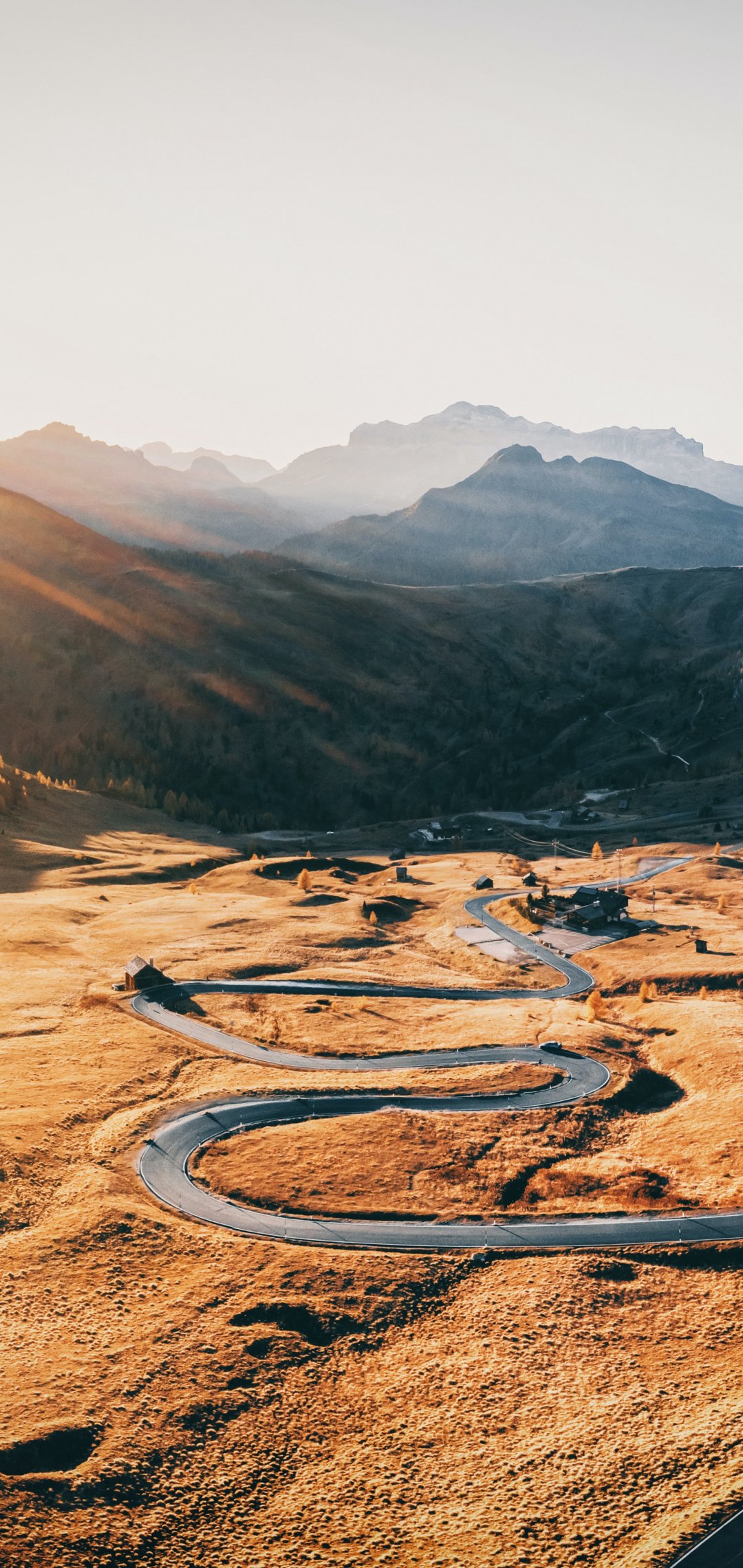Wallpaper: road between mountains, mountain peaks - 1080x2280