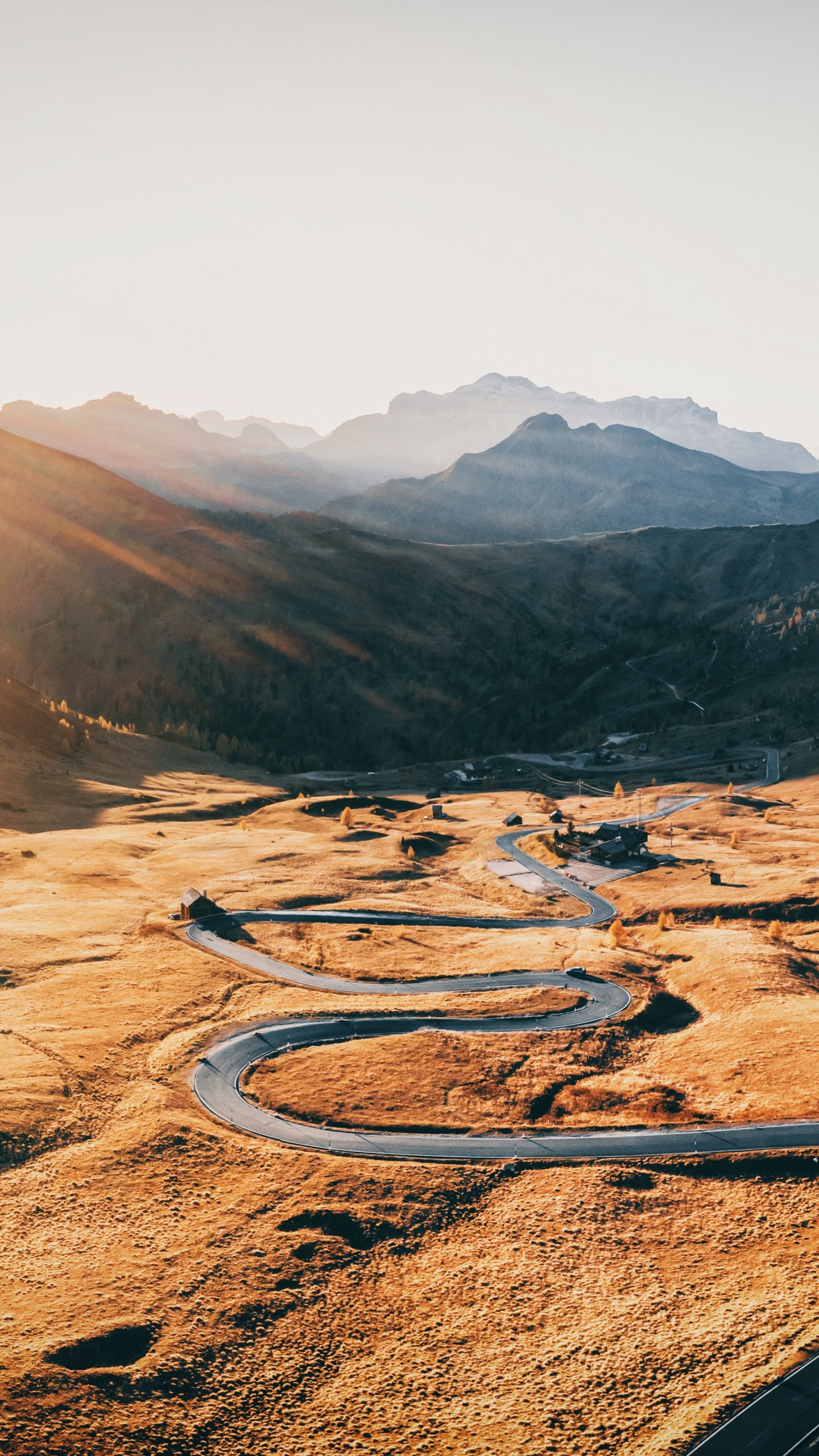 Wallpaper: road between mountains, mountain peaks - 1440x2560