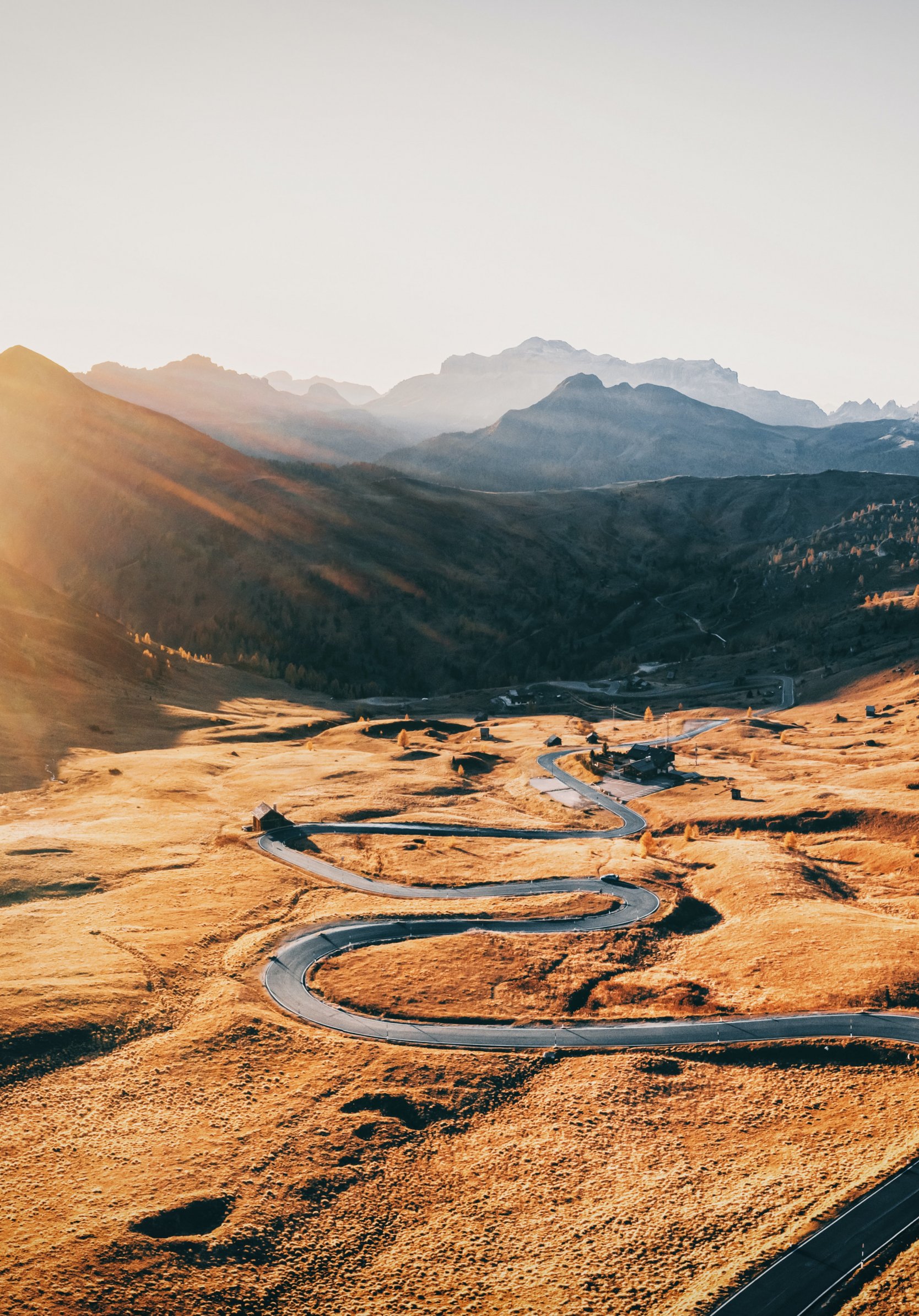 Wallpaper: road between mountains, mountain peaks - 1668x2388