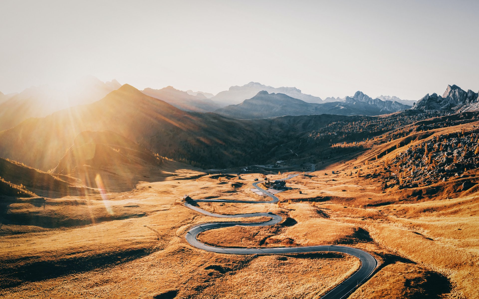 Wallpaper: road between mountains, mountain peaks - 1920x1200