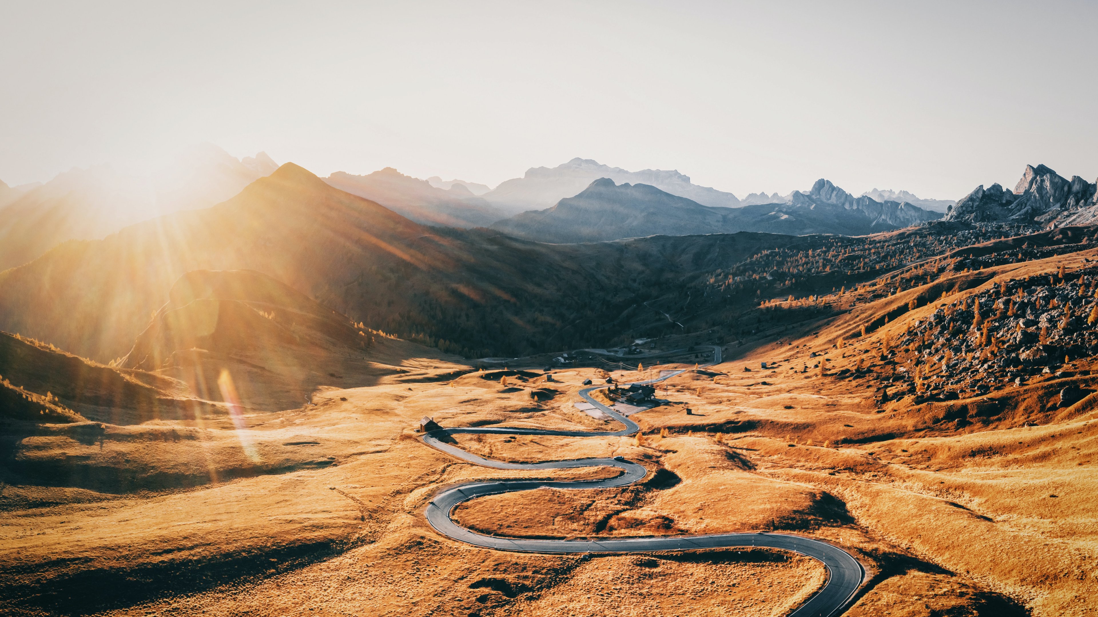 Wallpaper: road between mountains, mountain peaks - 3840x2160