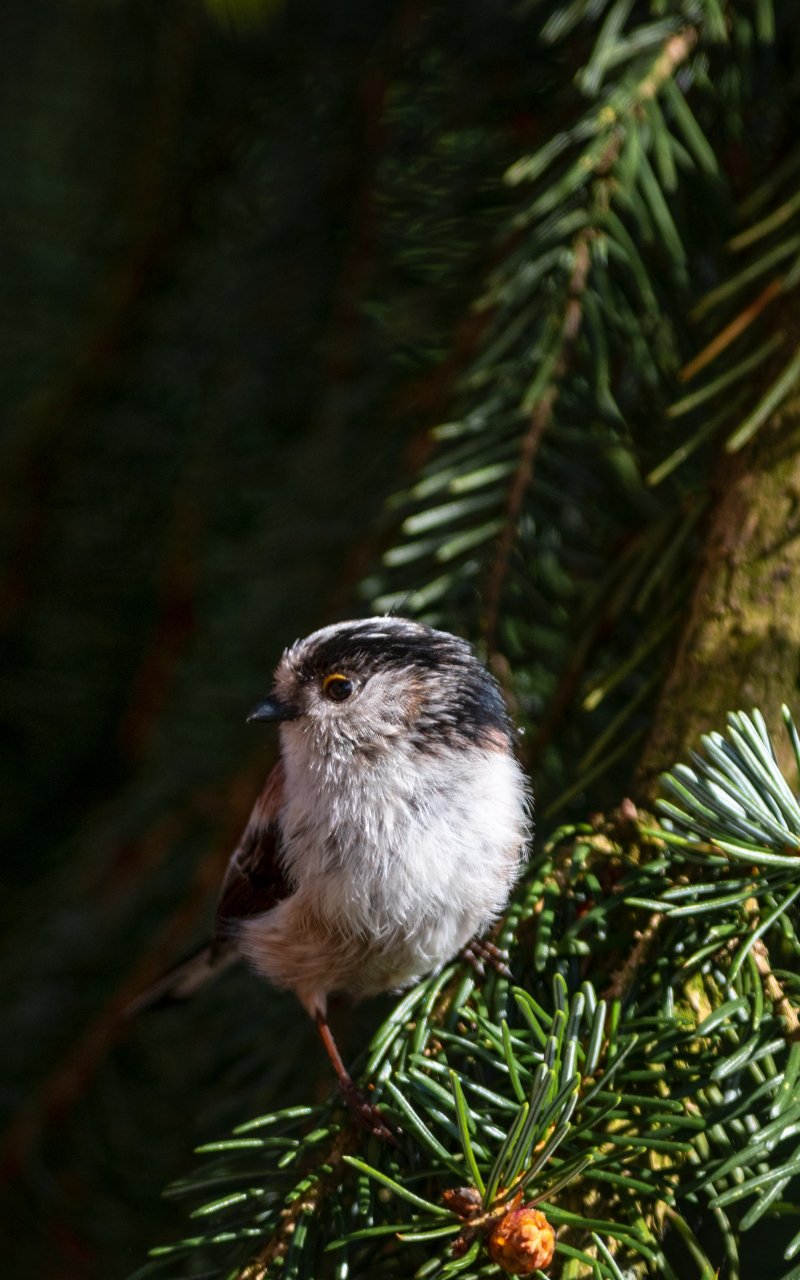 Wallpaper: little bird, in spruce branches - 800x1280