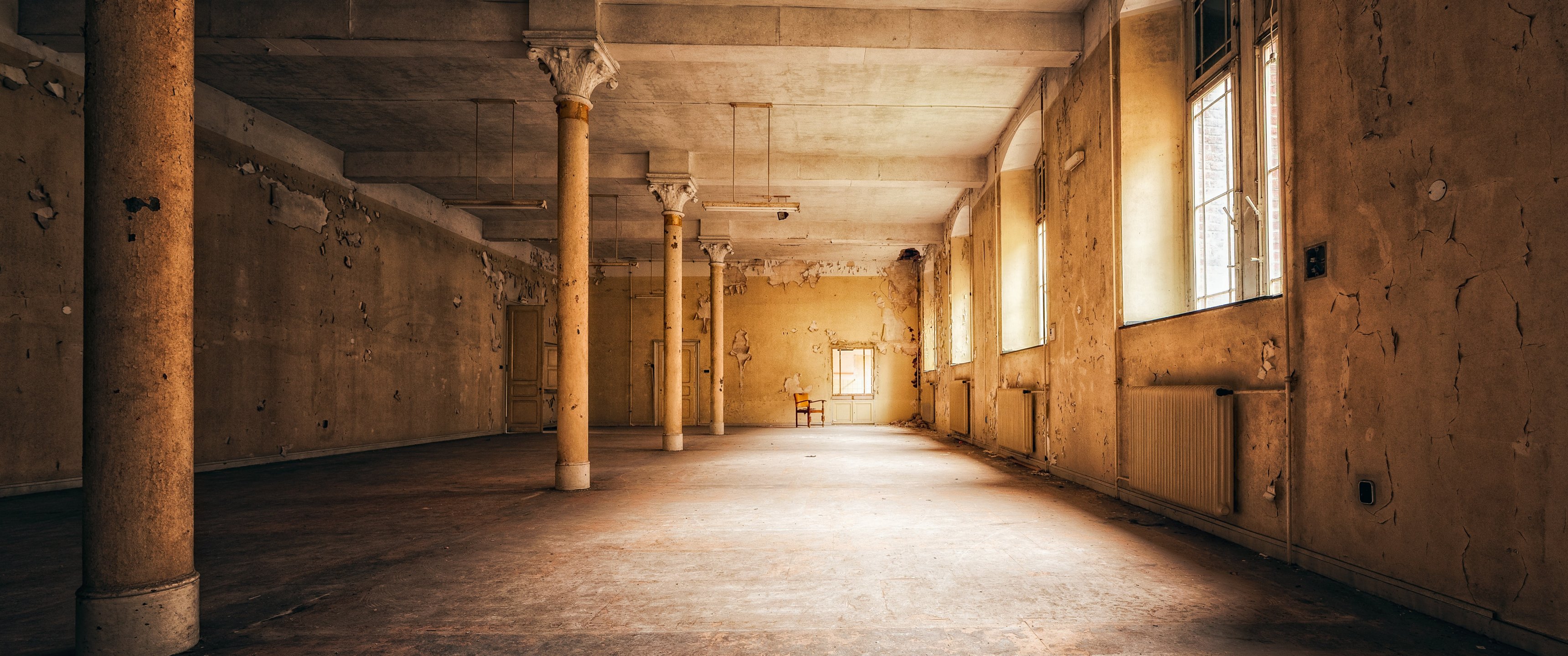 Wallpaper: room, abandoned building - 3440x1440